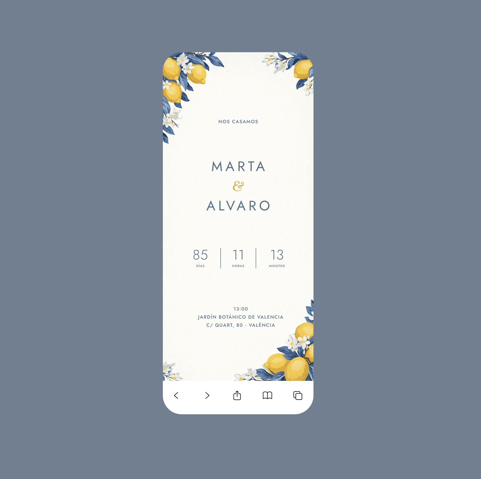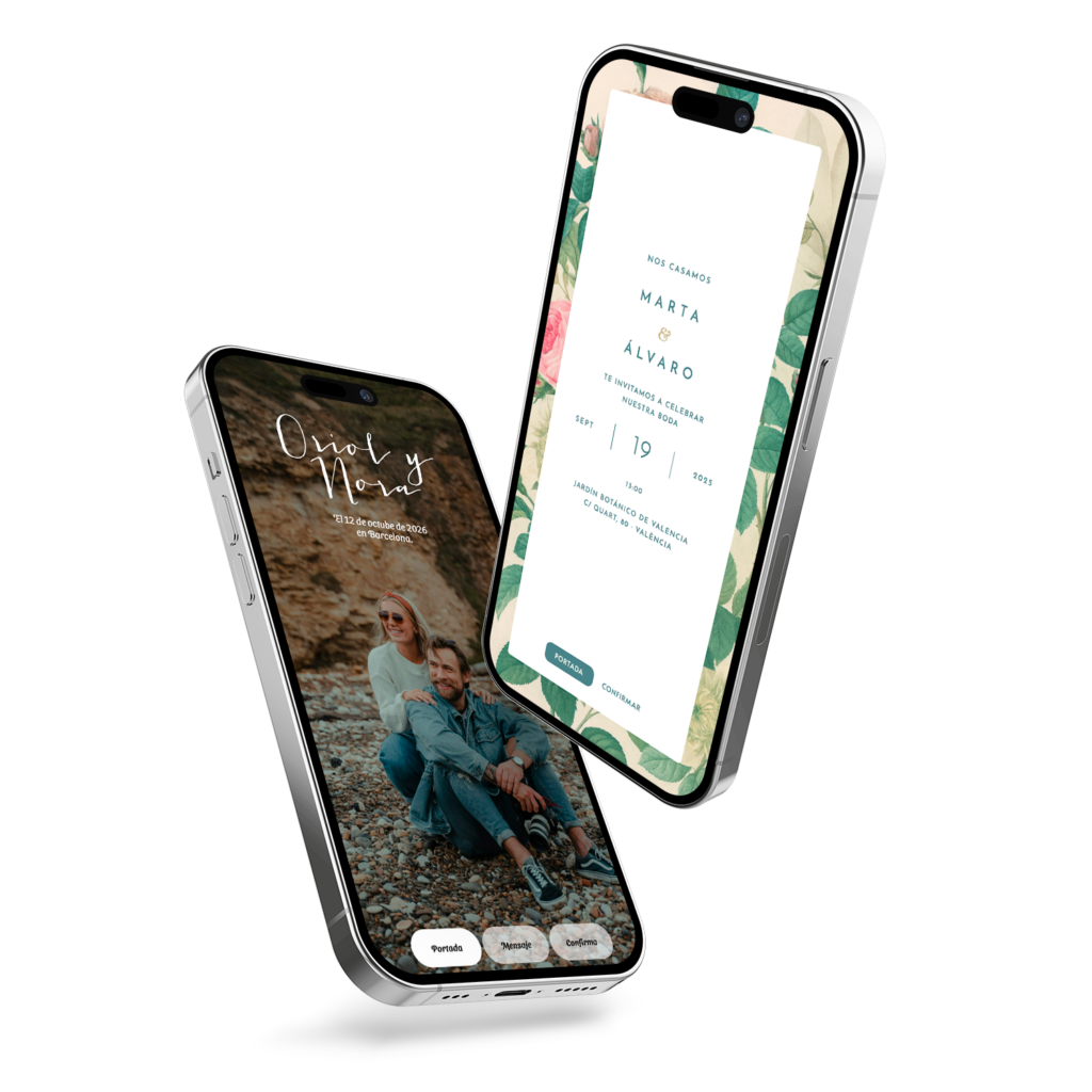 Invitaciones de boda digitales con diseño cuidado y edición sencilla desde 99€. Elige tu estilo, personaliza en minutos y comparte.
